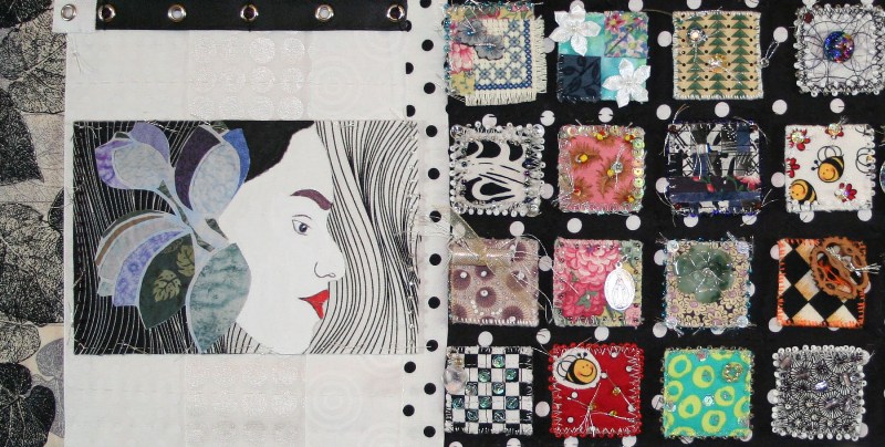 Hyoho Niten Ichi Ryu is the way of the martial arts, the school of two heavens as one strategy. Developed by the great swordsman in the early 1600s, Miyamoto Musashi practiced his skills with ceaseless determination as he studied the purpose of his strategy. As a philosopher and artist, he devoted his life to striving for perfection. The quilt reflects the classical Japanese kimono with the modern fabrics and embellishments. The Japanese kanji states: Hyoho Niten Ichi Ryu. The philosophy inspires me to be vigilant as I dedicate my life to my artistry.