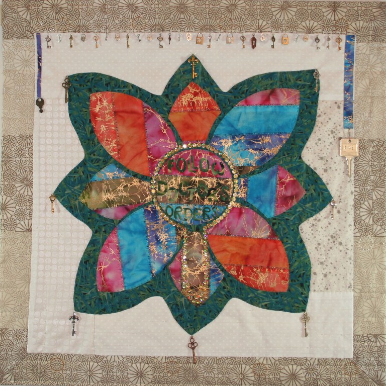 As you look closely at the quilt, the key to better health is apparent in the keyhole. Following doctor’s orders is vital to maintain and to improve your health!